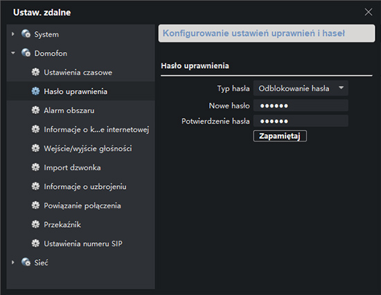 - monitor: Ustaw.zdalne -> Hasło uprawnienia, i jako Typ hasła, należy wybrać Odblokowanie hasła