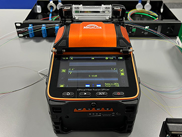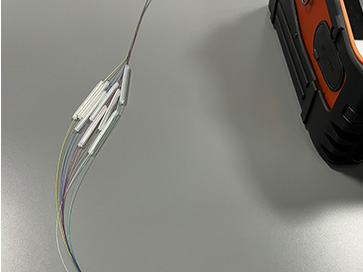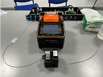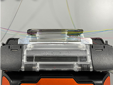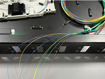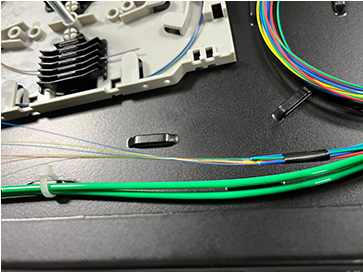 Odpowiednio dobrana wcześniej długość włókien, pozwala na wygodne spawanie poza przełącznicą. Należy pamiętać o nałożeniu przed spawaniem osłonek spawów na włókna.