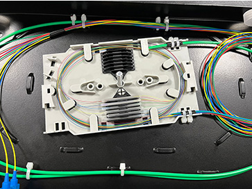 Ostatni etap, to umieszczenie spawów w holderze oraz włókien w kasecie spawów. Montaż osłonki kasety oraz pokrywy górnej przełącznicy.